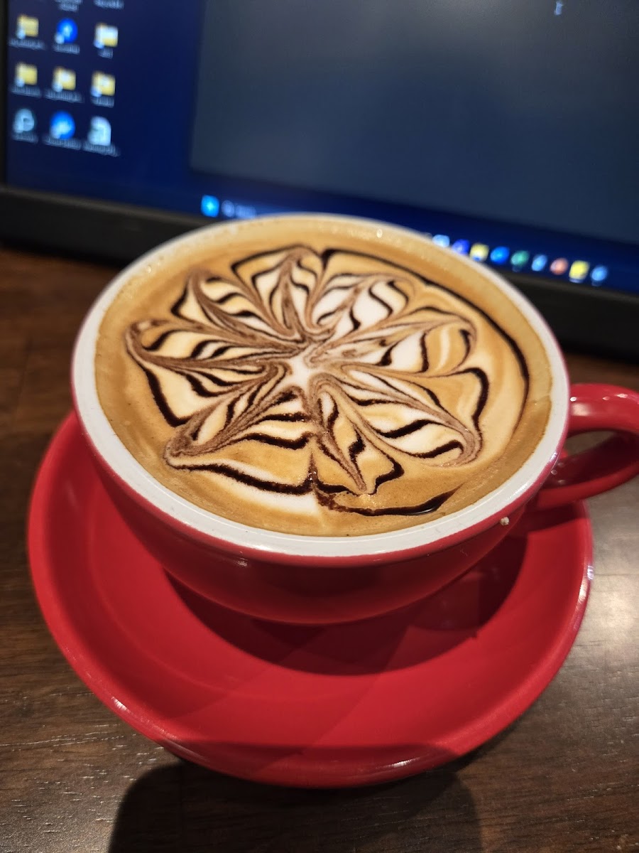 The warm decor and softly playing background music create an ambiance that is both relaxing and inspiring. Guests can enjoy a unique library-like atmosphere, complete with a cozy bookshelf that invites you to lose yourself in a good book while savoring a delicious cup of coffee. Many patrons, including Tatieli Ramos, have remarked on the charm of the space, ideal for studying, working, or enjoying meaningful conversations with friends.